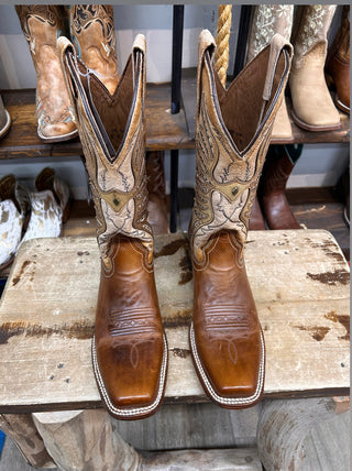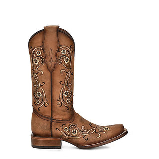 Circle G by Corral Ladies Saddle Floral Embroidered Tan Square Toe Boots L5837