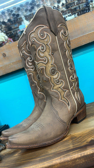 CIRCLE G BY CORRAL BROWN OVERLAY EMBROIDERY STUDS - BOOT LADIES - L2056