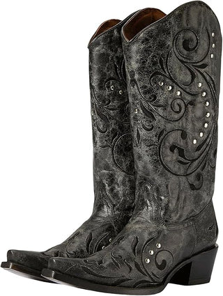 CIRCLE G WOMEN'S BLACK & GREY EMBROIDERY STUDDED WESTERN BOOT -L5936