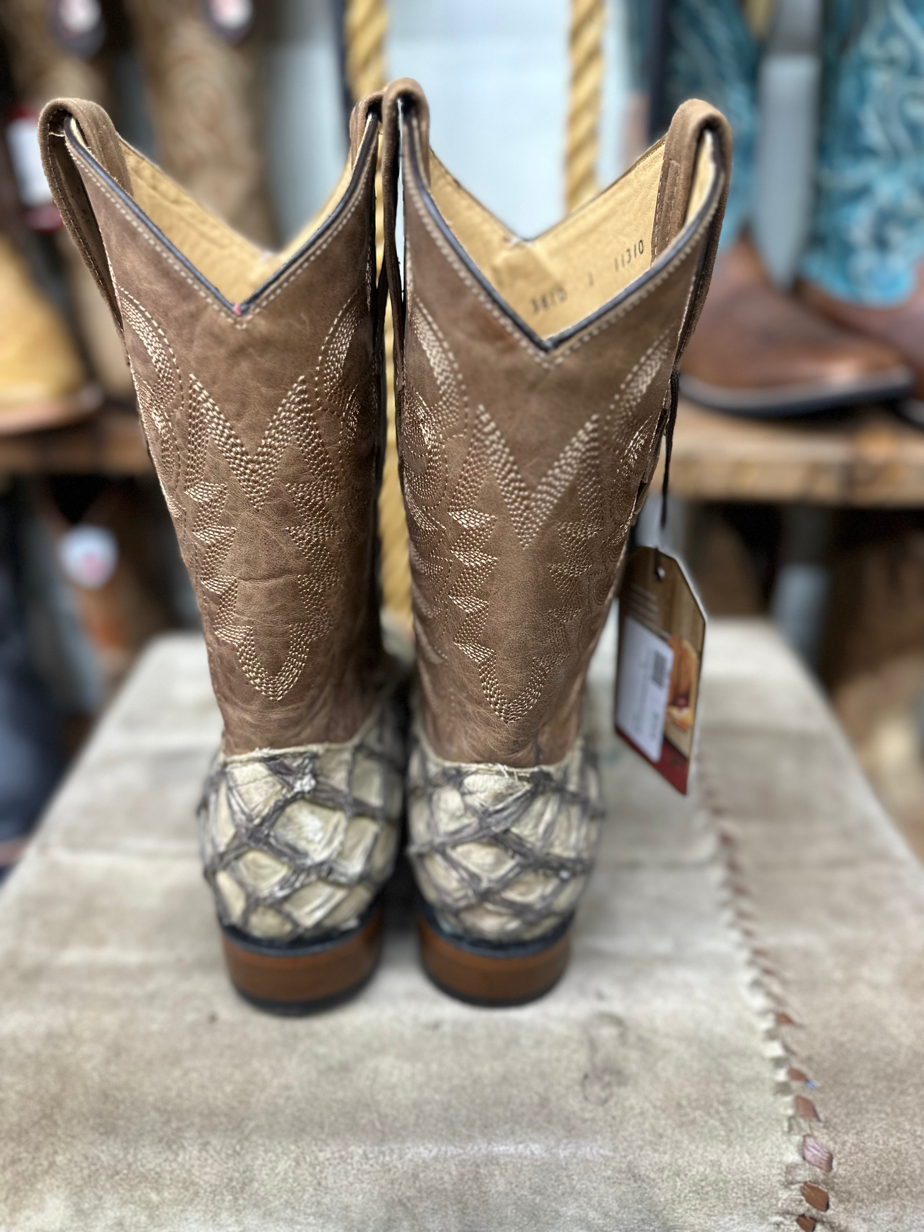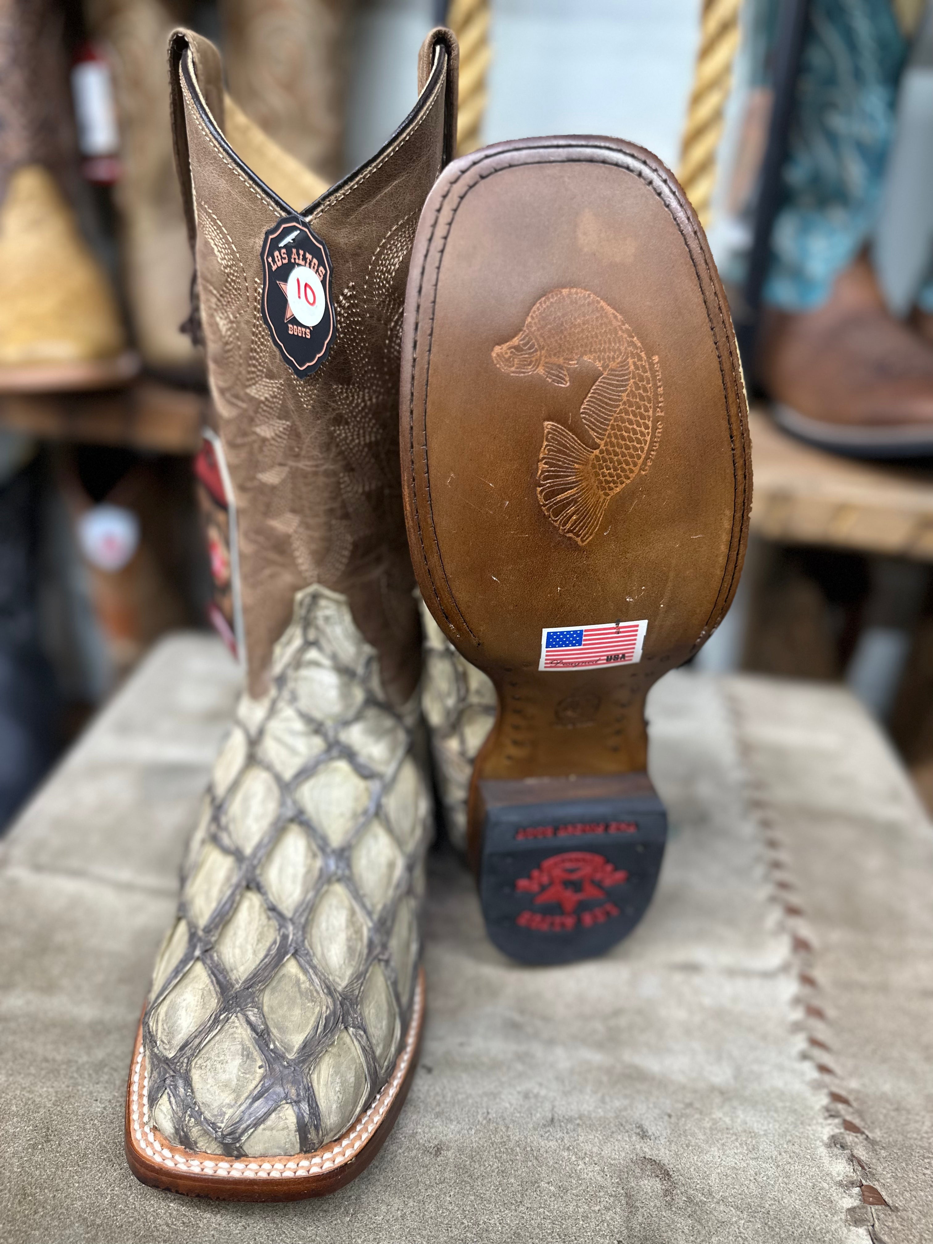 Los Altos Men's Brown Genuine Pirarucu Wide Square Toe Boot(TABACCO)-8221059