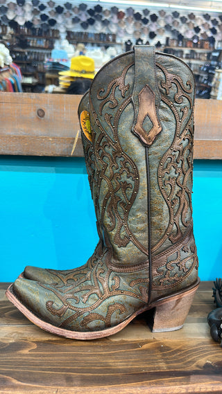 Corral Ladies Turquoise & Brown Embroidery & Studs Leather Boots C3750