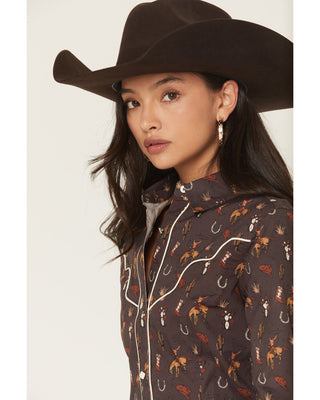 Rock & Roll Denim Women's Western Conversation Print Long Sleeve Snap Shirt