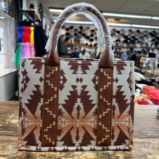 WG2212-8120BR Wrangler Southwestern Print Small Canvas Tote/Crossbody - BROWN