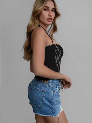 RAELYNN Embroidered Western Corset Top(Black)-TA30581