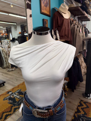 Throw and Go Asymmetric Drape Bodysuit (Ivory)-FBS13199-CP723