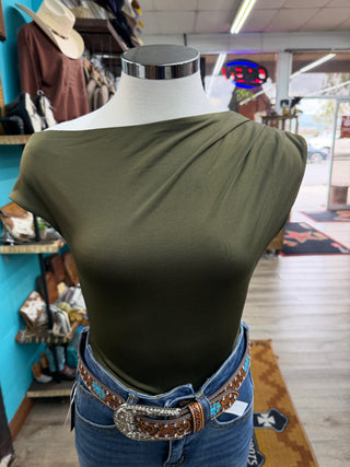 Throw and Go Asymmetric Drape Bodysuit (Olive Brown)-FBS13199-CP723