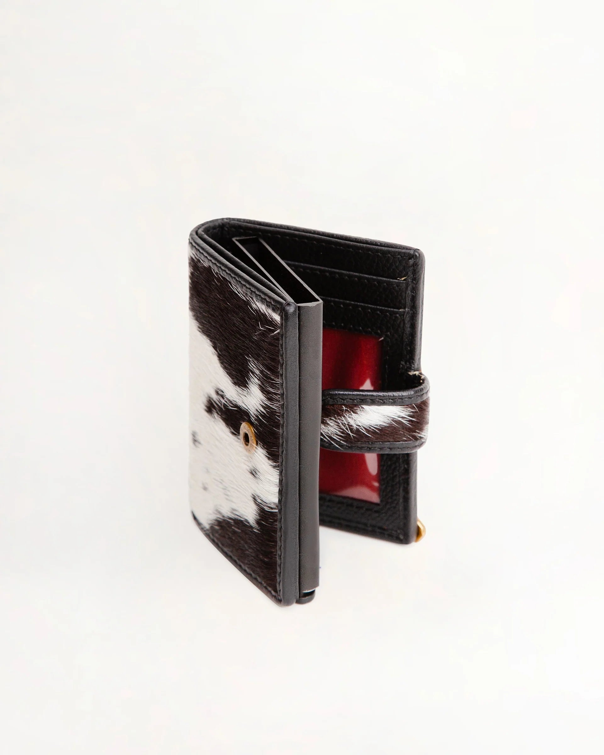 The My Prairie Credit Card Holder combines functionality and rustic charm with its full hair-on leather design. The black and white cowhide adds a bold, sophisticated touch, while the durable hair-on leather ensures long-lasting use. This compact card holder is perfect for organizing your cards in style, offering a practical yet stylish accessory for everyday essentials. Carry your cards with a touch of rugged elegance wherever you go.