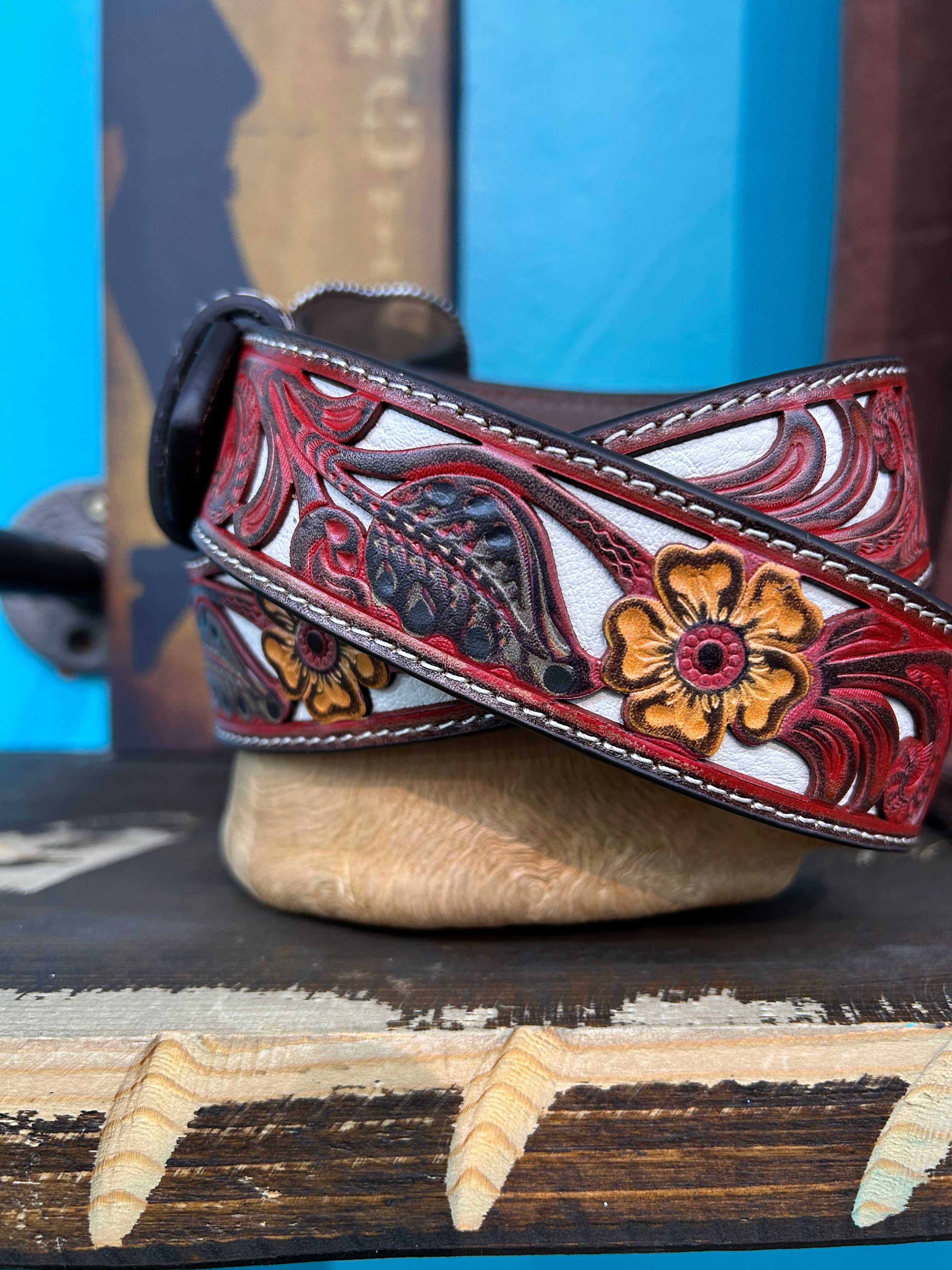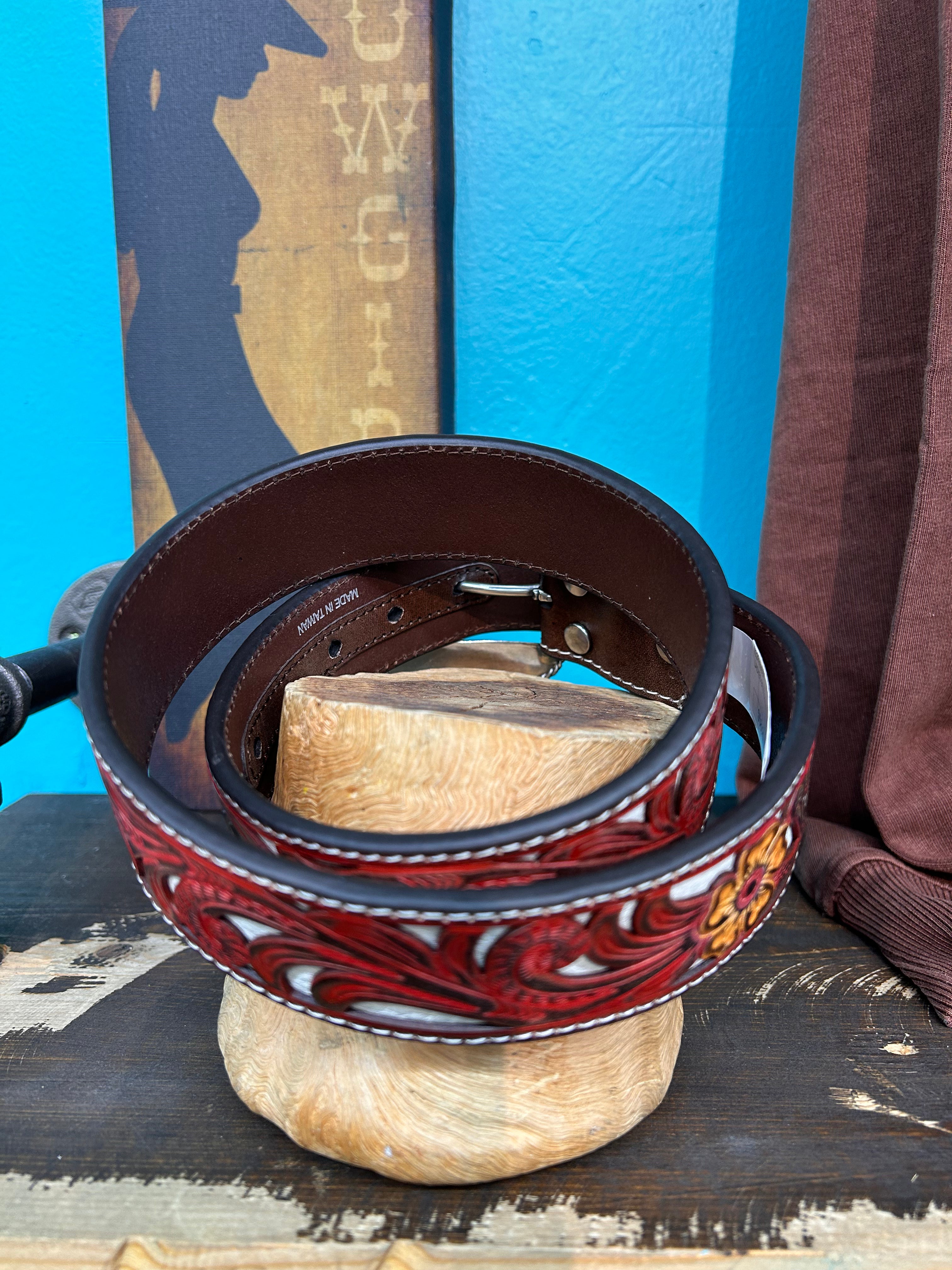 Nocona Ladies Floral Belt- Red/Brown