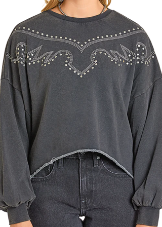 ROCK & ROLL COWGIRL BLACK EMBROIDERED SWEATER BW91T06995