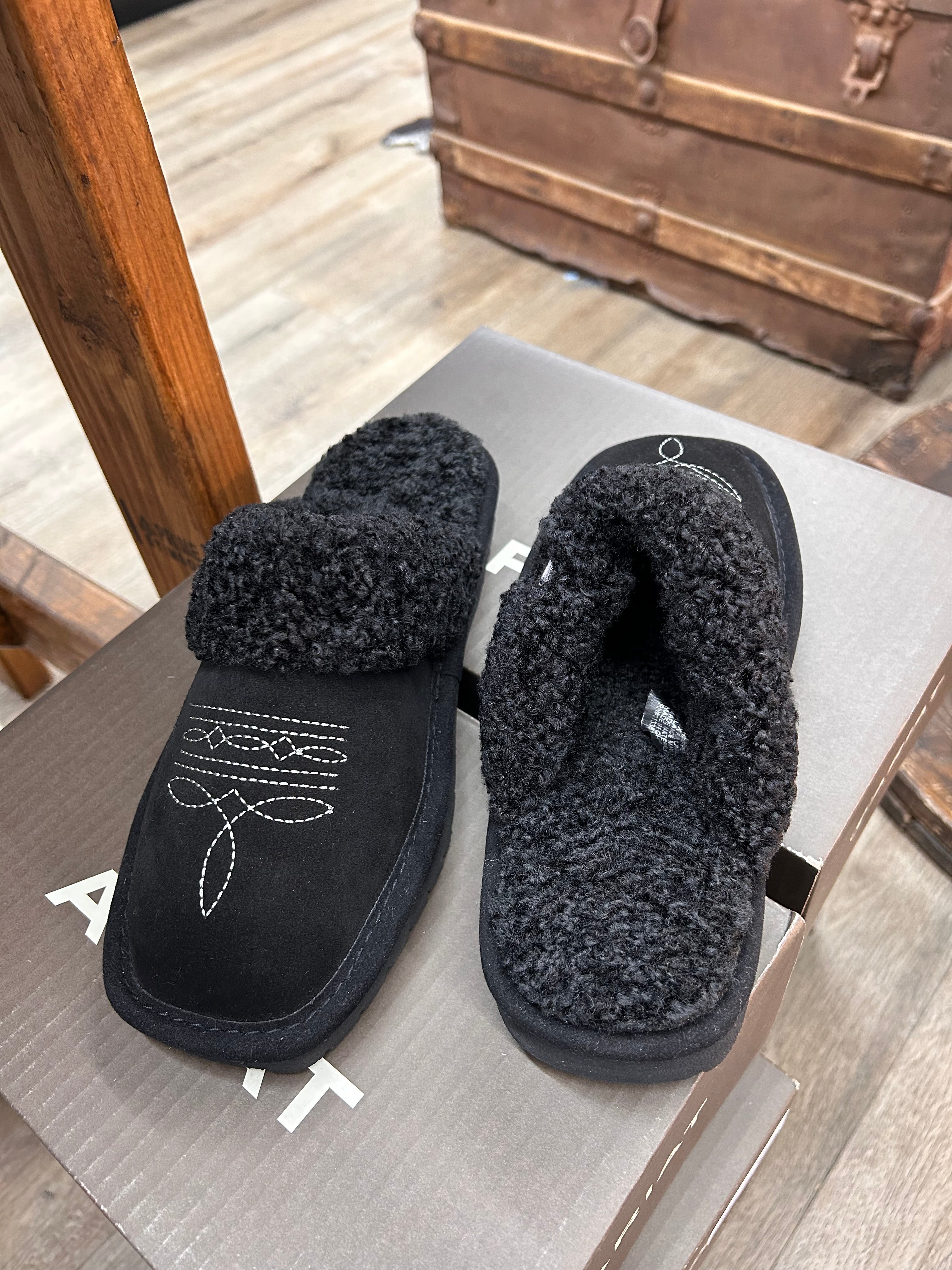 JACKIE SQUARE TOE SLIPPER IN BLACK