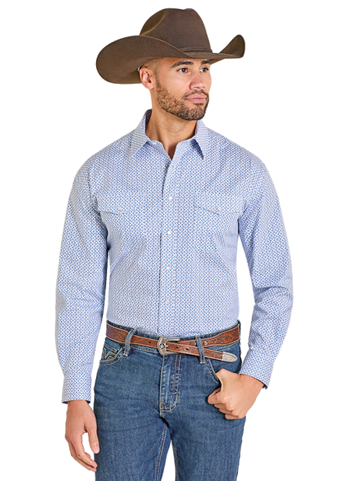 Men's Pendleton Blue Long Sleeve 2 Pocket Snap Shirt SMN2S07607
